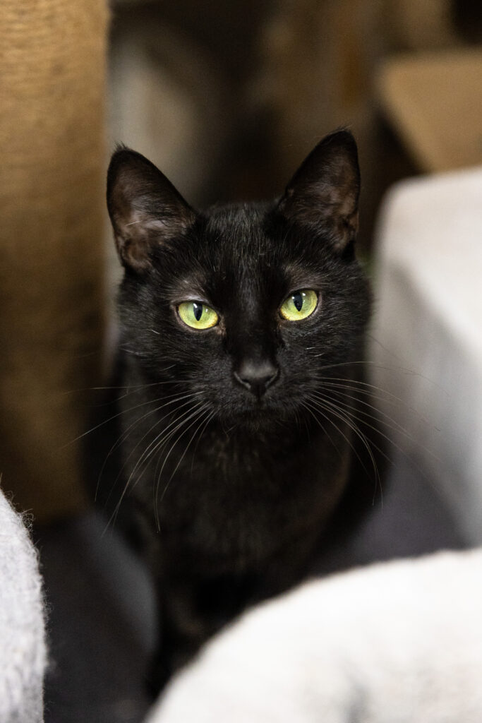 Morticia is a charming 1 year old female who likes things her way. She loves to lurk in the shadows or hide around corners, watching you from afar – when she feels like it, she’ll grace you with her presence and make you feel welcome in “her” home.