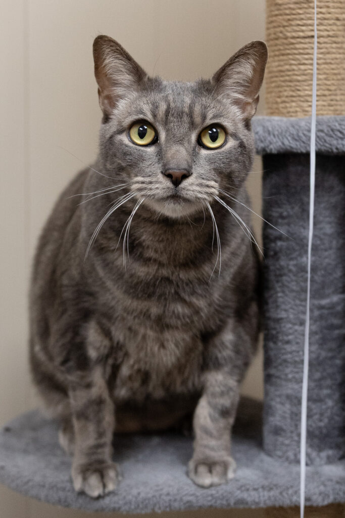 St. John is a quiet 10 year old male who spends his days cozied up in a cat tree. He can take a little time to warm up in new places, but he loves a good bed, treats, and chin scratches.